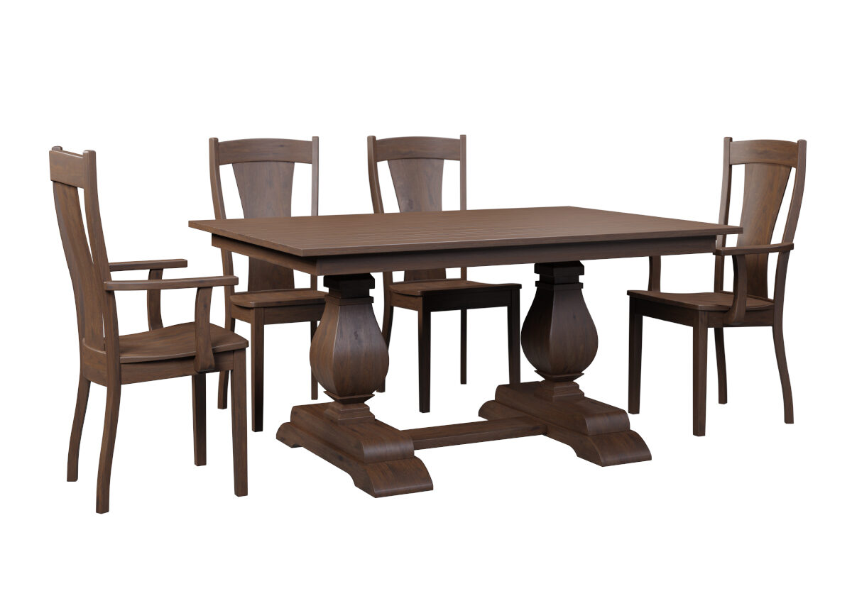 With over 130 products in their catalog, they have gorgeously built pedestal, trestle, glass top, and mission tables all in varying shapes, sizes, and stains. Kountry Knob Tables also offers a great variety of chairs and benches to pair with each dining table.
